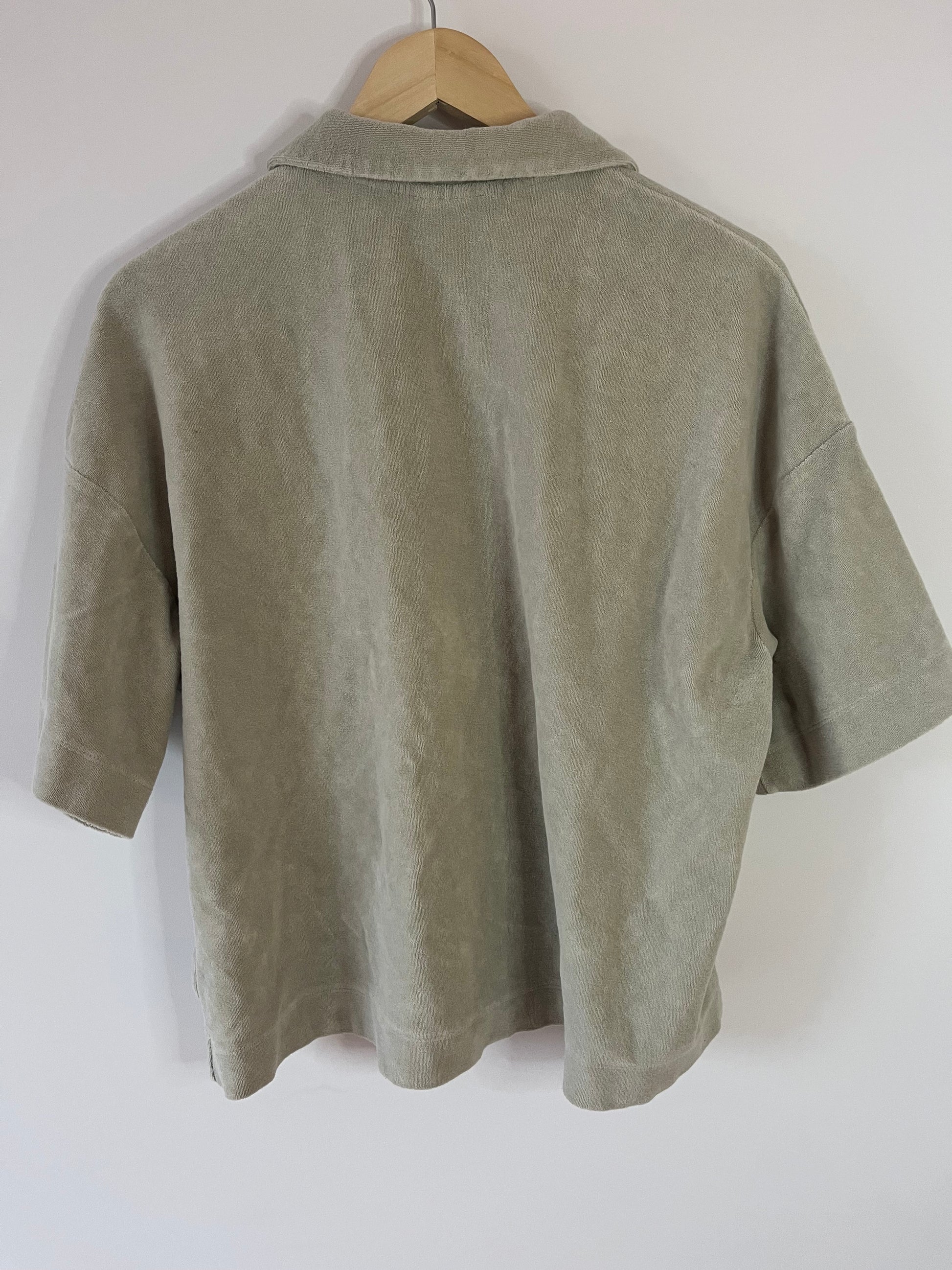 Chemise en éponge H&M, légère et décontractée. Confortable et douce au toucher, cette chemise à manches courtes au look minimaliste est parfaite pour les journées d’été ou pour un style détente à la maison. Son tissu effet velours éponge lui donne une allure moderne et relax.