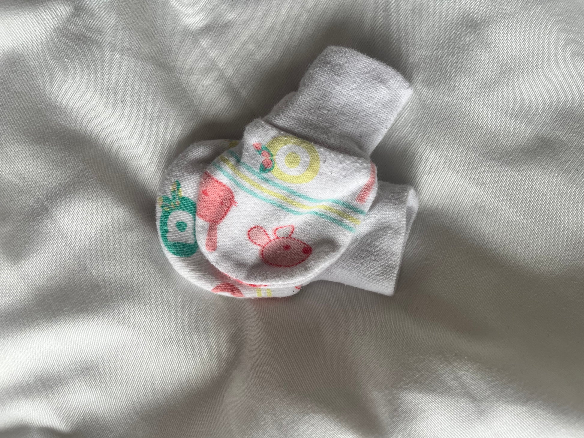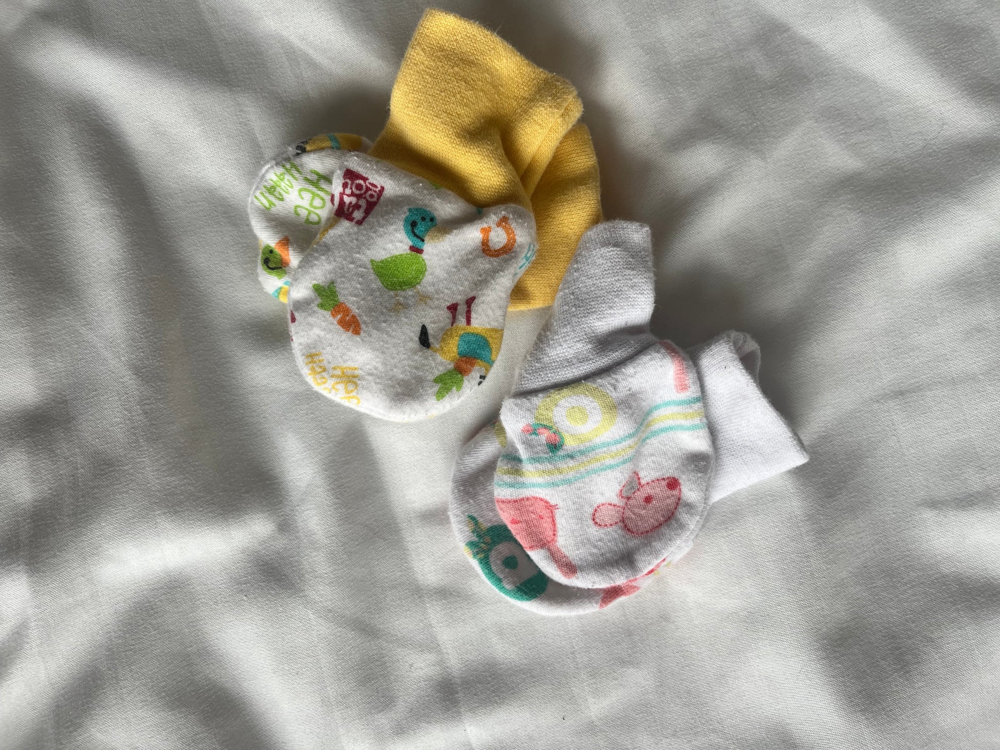 Lot de deux paires de mitaines aux motifs amusants, parfaites pour garder les petites mains de bébé bien protégées.