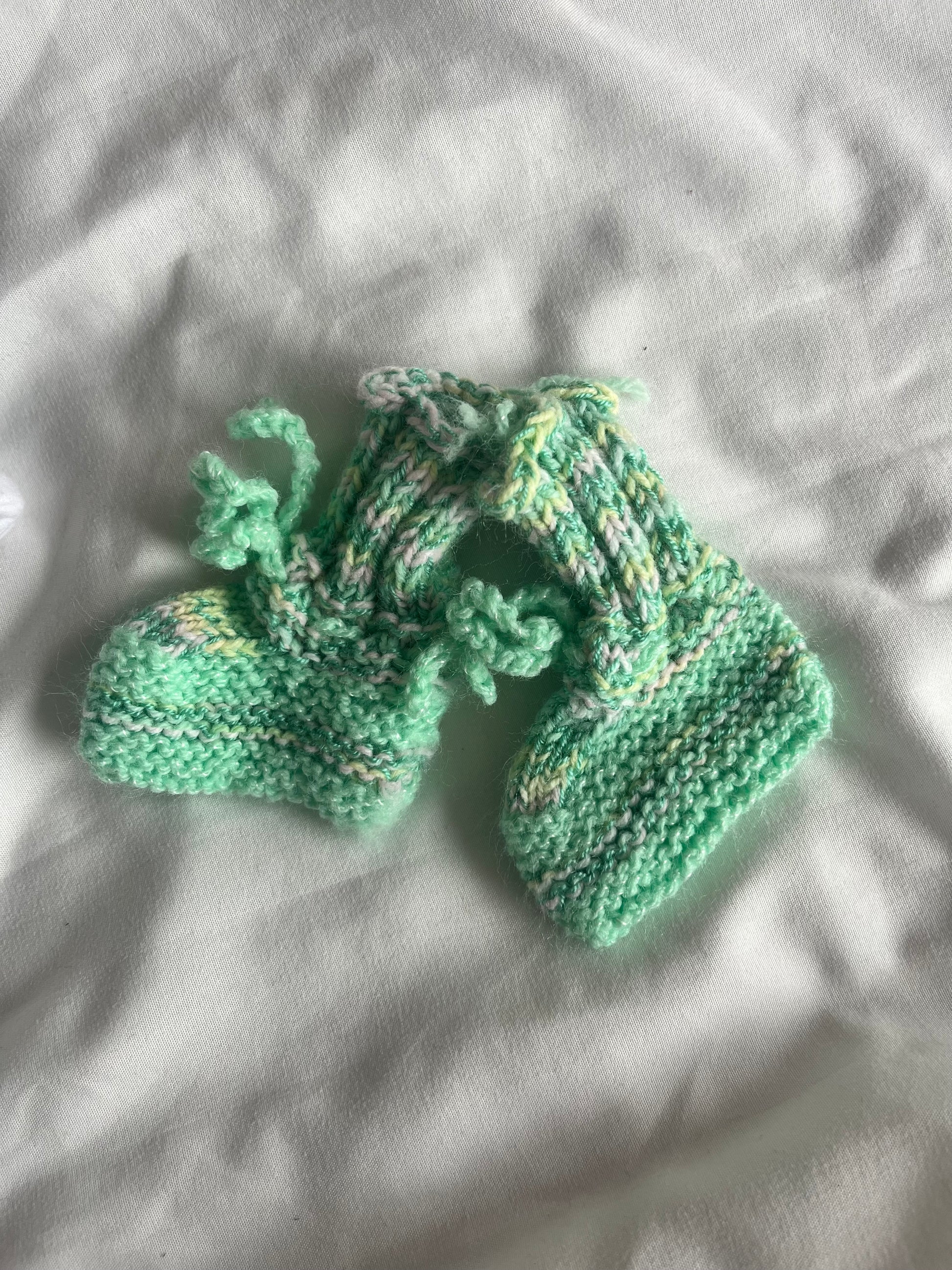 Adorables petites pantoufles faites à la main, parfaites pour garder les petits pieds de bébé bien au chaud.